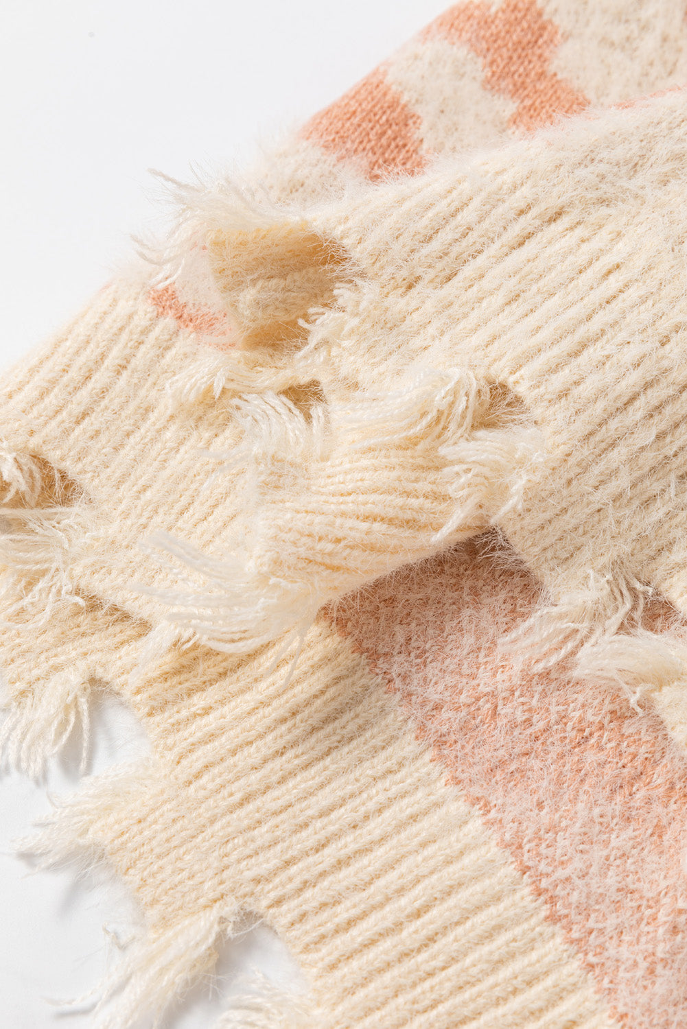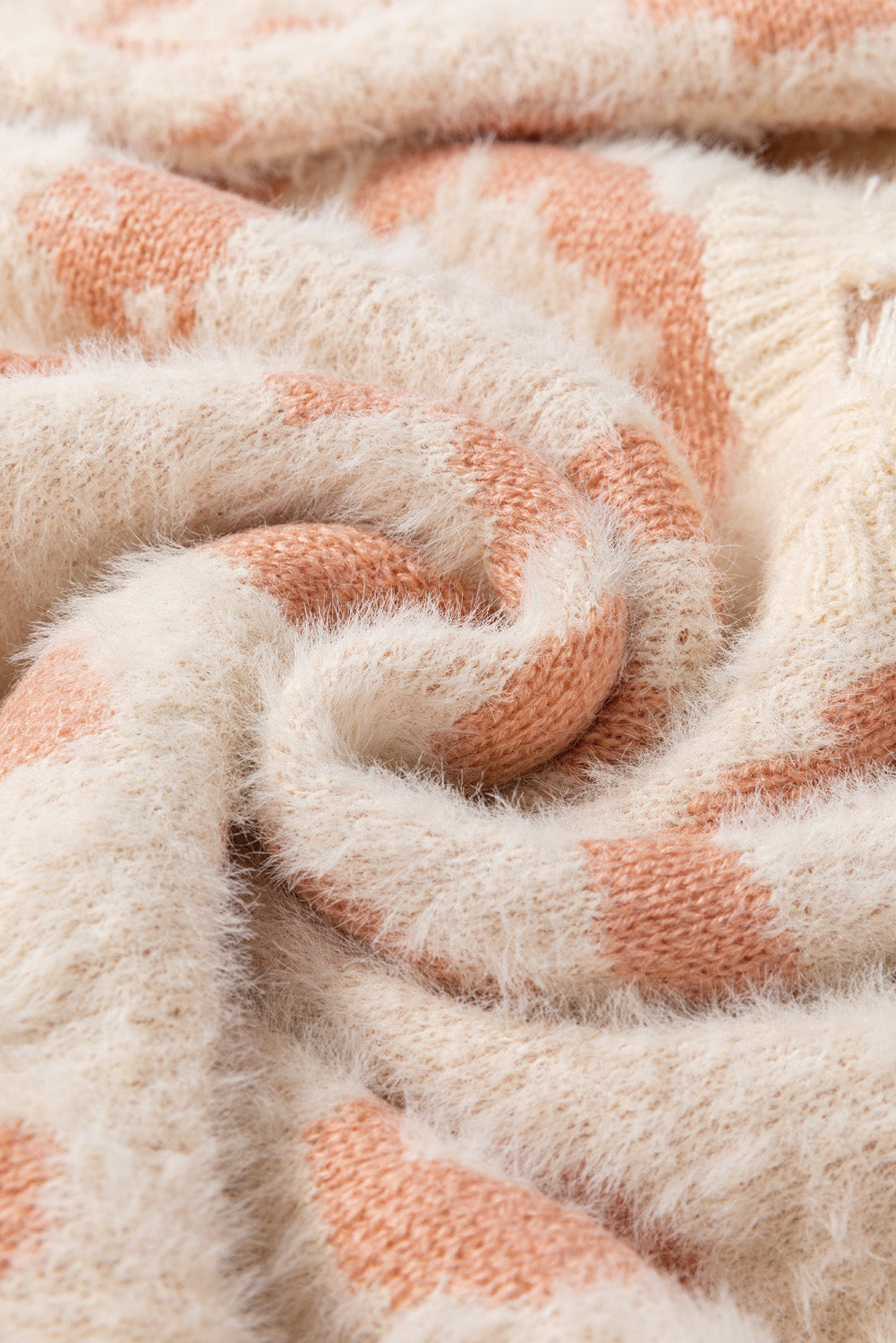 Suéter de cuello en V con estampado de leopardo y ribete desgastado
