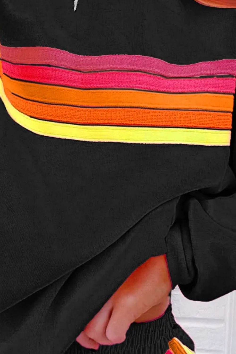 Conjunto de top y pantalones cortos con cuello redondo y rayas en contraste de talla grande