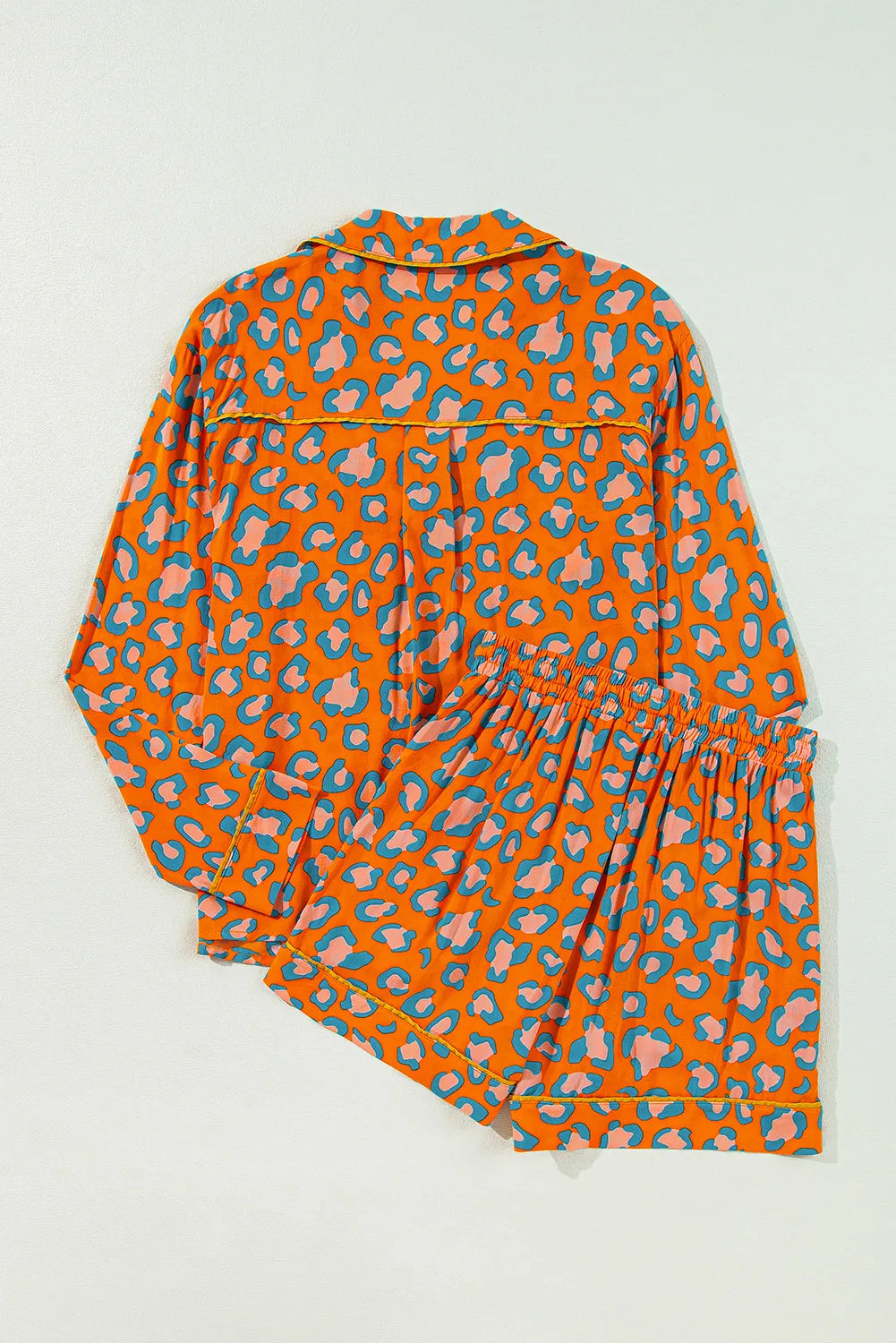 Conjunto de estar por casa con camiseta de manga larga y pantalones cortos con cuello de leopardo