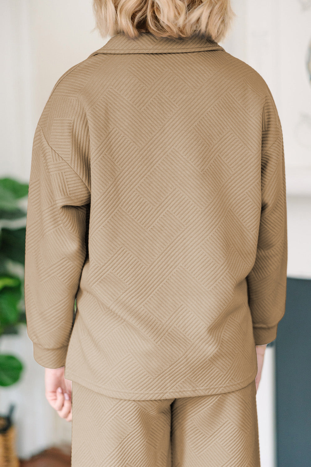 Conjunto de top con cuello texturizado y pantalones de pierna ancha