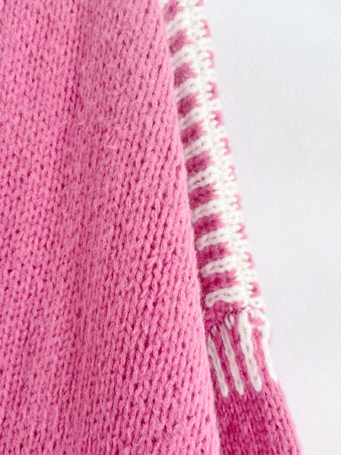 Double Take Contrast Open Front Dropped Shoulder Cardigan